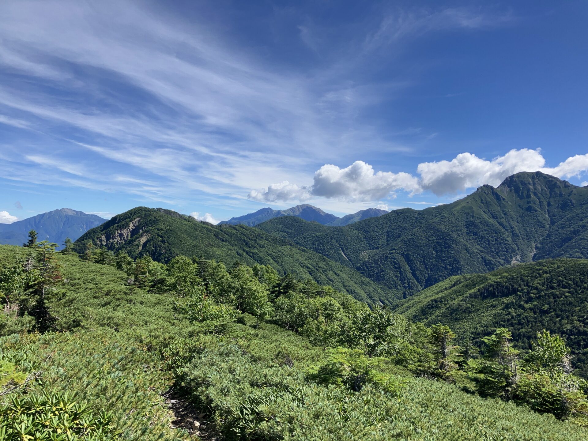 気持ちの良い道中を暫く歩きます。右前方に見えているのが塩見岳かな。