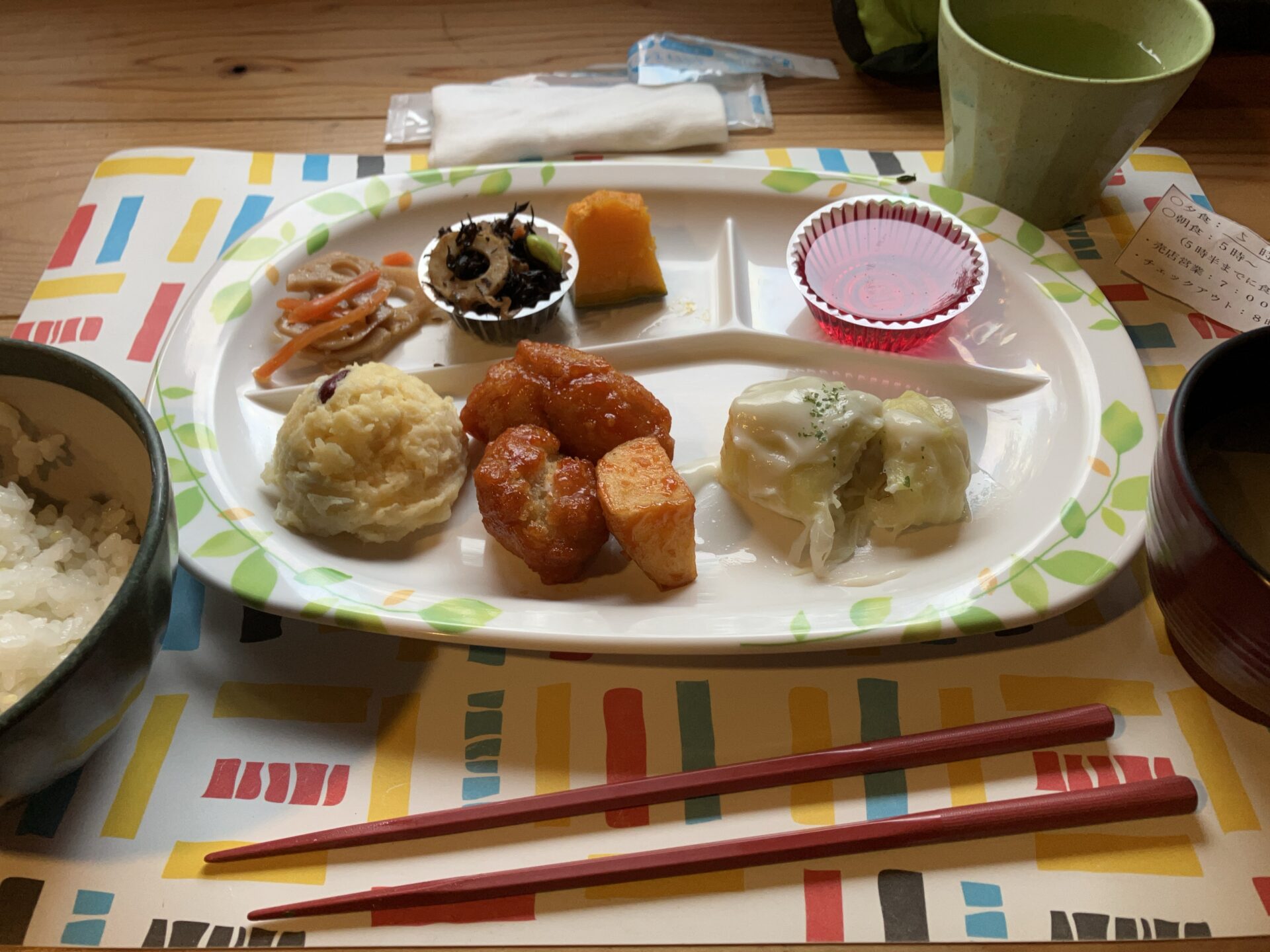 地のもののおかずで、ごはんと汁物はお代わり自由でした。