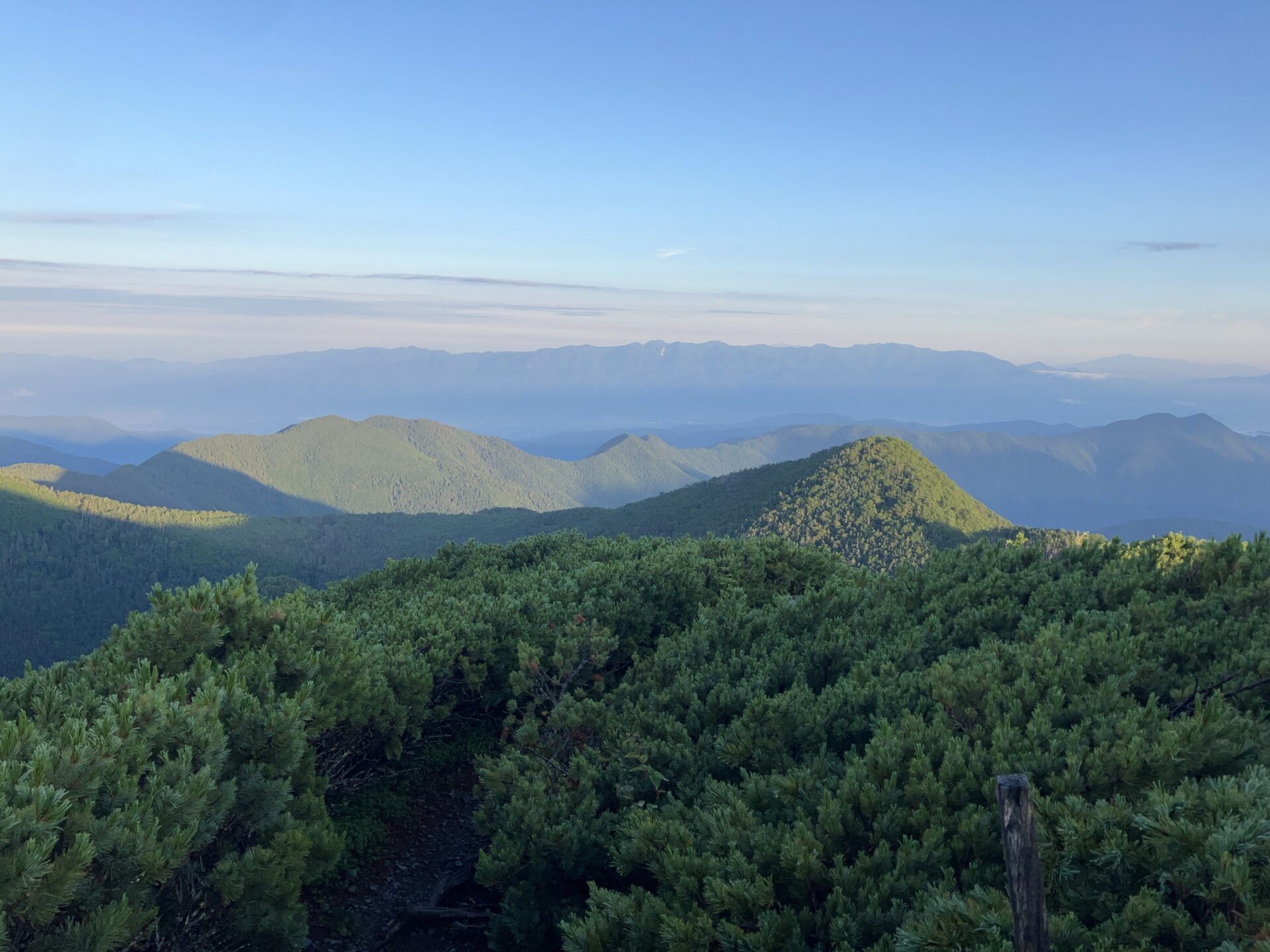 仕事終わり、夜の高速道路を走らせ、登山口近くの駐車場で車中泊。翌朝登り始めました。