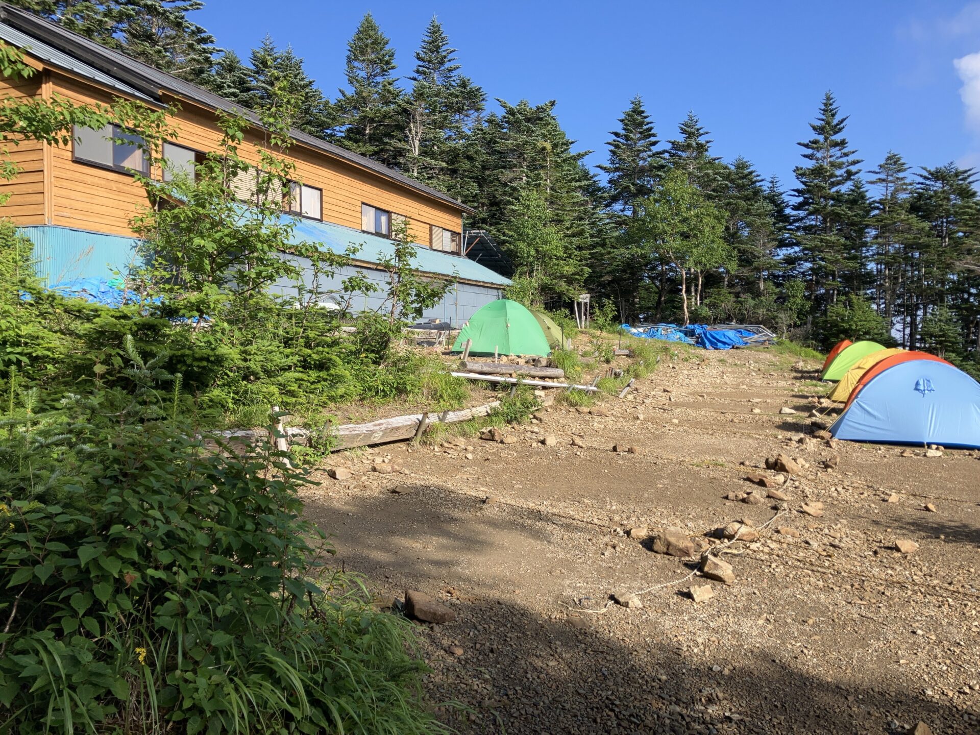 三伏峠小屋に到着。テント装備の方々はここで一泊される方が多いです。