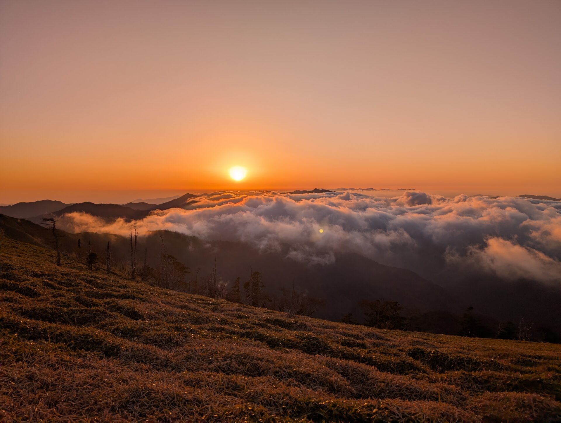 日の出は早朝登山で体験できますが、日の入りは山頂付近で宿泊しないと体験できないので貴重な機会です。