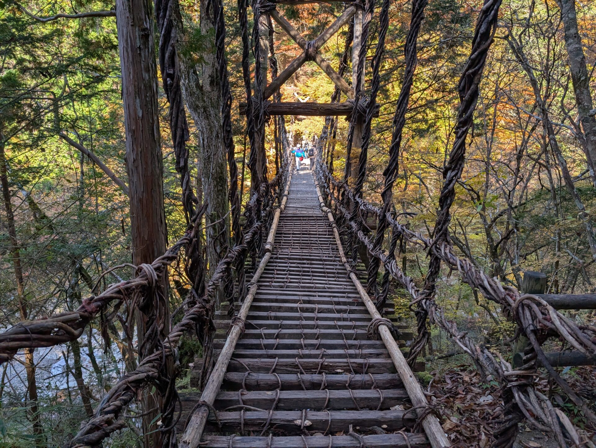 かずら橋に到着、三嶺(みうね)の登山口まで30分程道路を歩いて本日の山行は完了です。